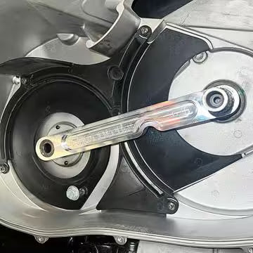 Tool sits on the Crankshaft and Transmission Shaft of a CVT Clutch